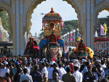 The iconic Mysuru Palace built in 1912 will be lit up with thousands of bulbs from 7.00 pm till 10.00 pm on all all the festival days.
