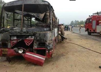 Lucknow: At least 22 persons on Monday were charred to death in Uttar Pradesh after their bus caught fire following a massive collision with a truck on a national highway in Bareilly, police said.