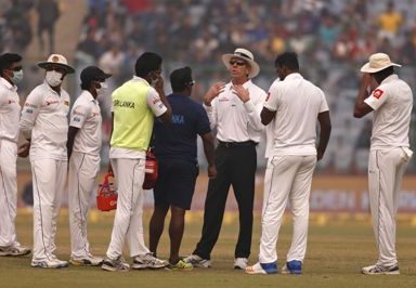 New Delhi: The second session of the third and final Test match between India and Sri Lanka was halted for few minutes due after concerns over the poor air quality here on Sunday, prompting Lankans to wear anti-pollution masks.