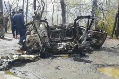 “The car caught fire and slight damage was caused to the rear of one of the CRPF vehicles. No injuries were caused to CRPF personnel. The incident is being investigated,” the CRPF said in a statement.