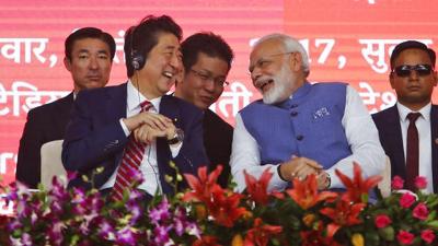 PM Modi, Japanese counter Abe lay foundation stone for high-speed rail project