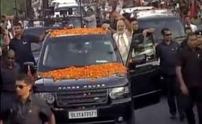Huge crowd welcomes Prime Minister Modi during roadshow in Bhubaneswar