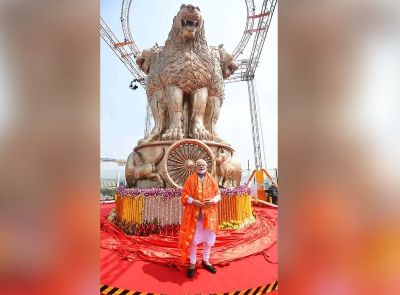 PM unveils National Emblem cast on roof of new Parliament building