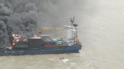 Container ship on fire in Bay of Bengal, 22 crew members rescued