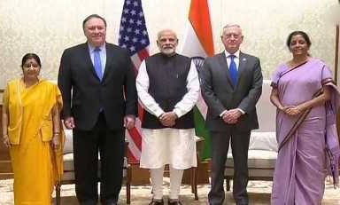 Pompeo and Mattis were accompanied by Sushma Swaraj and Sitharaman when they called on the Prime Minister.