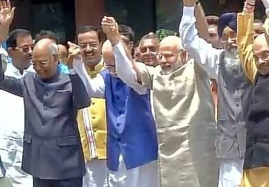 New Delhi: NDA Presidential candidate Ram Nath Kovind filed his nomination for the July 17 election here on Friday in the presence of Prime Minister Narendra Modi, BJP President Amit Shah and Chief Ministers of NDA-ruled states.