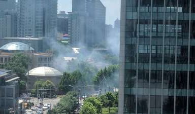 Smoke rising from the vicinity of the Embassy in the heart of the Chinese capital