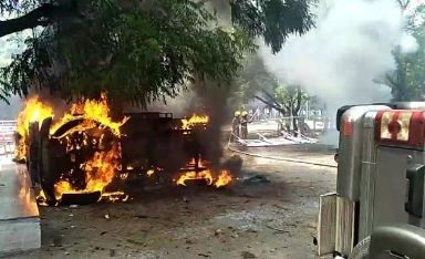 The area around the Collectorate resembled a battle-zone with the protesters setting vehicles afire and attacking policemen with stones. Plumes of black smoke emanated from the protest site. Police retaliated in a bid to bring the situation under control.