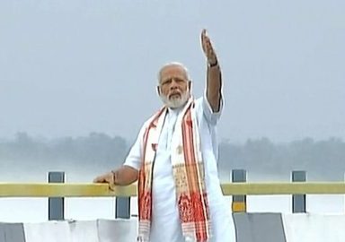 The Prime Minister, accompanied by Assam Chief Minister Sarbananda Sonowal, Assam Governor Banwarilal Purohit and Union Transport and Shipping Minister Nitin Gadkari, travelled in a cavalcade on the bridge for about two km towards Sadiya before returning to Dhola.