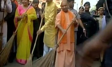 Lucknow: Uttar Pradesh Chief Minister Yogi Adityanath on Saturday wielded the broom and undertook a cleanliness drive here. He also vowed to make the state open defecation free (ODF) by 2018.